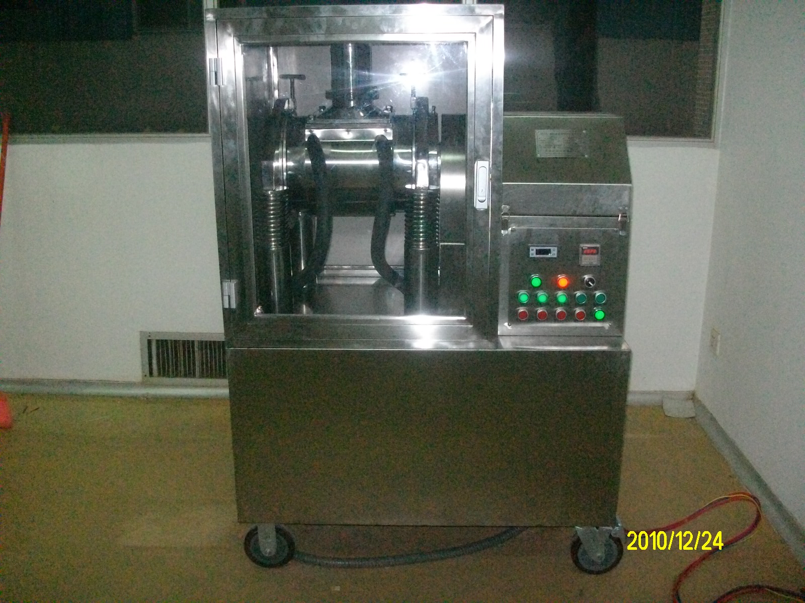 该设备属第四代振动磨,具有粉碎效率高、破壁率高、粉碎温度低与全密闭作业等特点。粉体粒径可达1~0.1μm,细胞破壁(膜)率达95%以上,使用范围涉及医药(含兽药和农药)、保健食品、化妆品、化工建材、冶金能源、电子环保等行业,并已得到广泛应用。